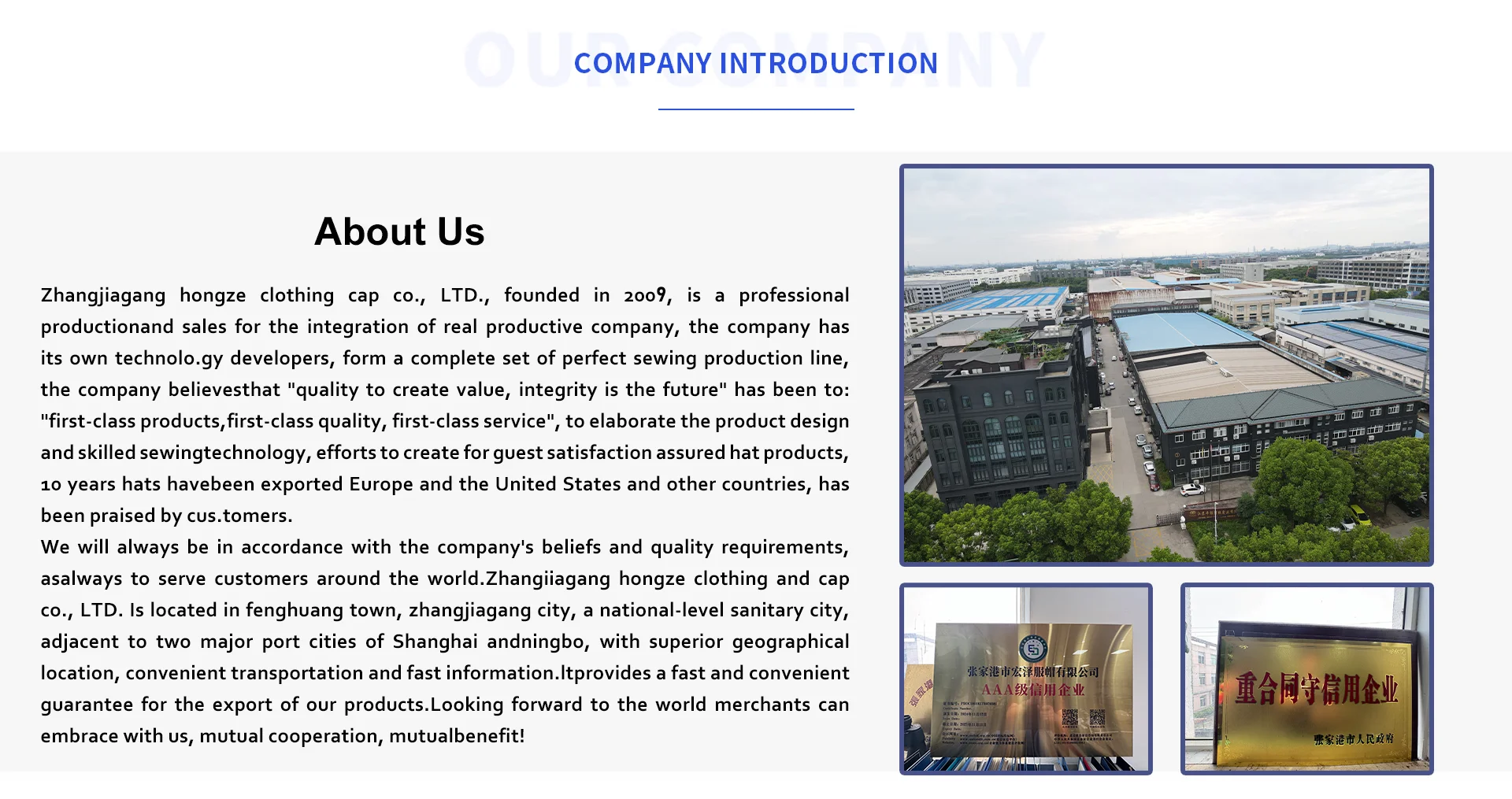 Zhangjiagang Hongze Clothing Hat Co., Ltd.